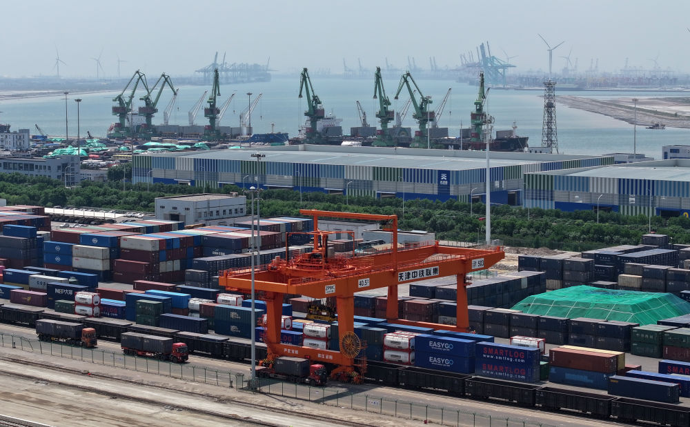 天津港正在实现“货通全球”:北京的汽车运往东南亚,装满进口矿石的列车驶向中国西北,日韩生产的日用品短暂停留后发往蒙古国,新疆的番茄酱从这里“乘船出海”前往欧洲……
