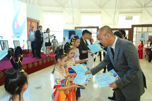 △当地时间6月27日,2024“未来世界”国际青少年艺术展演在塔吉克斯坦国家博物馆开幕。