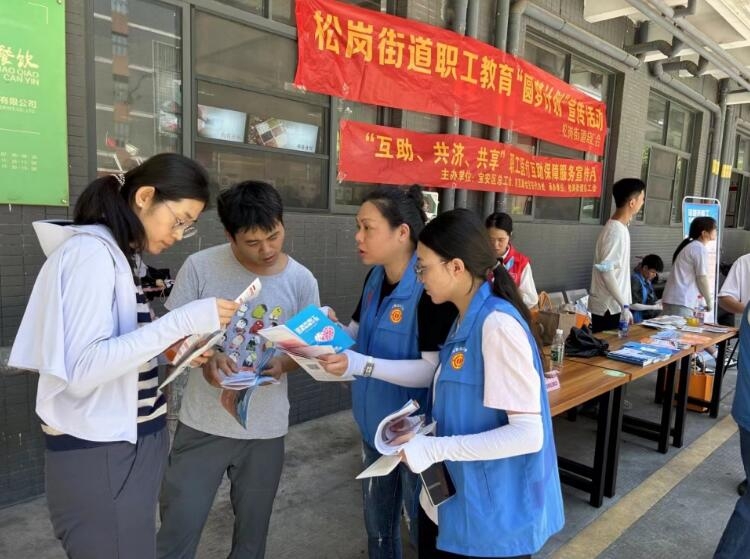 首场宣传活动在松涛社区暖蜂驿站正式拉开帷幕。活动现场,松岗街道总工会联合茅洲河工联会首先对“圆梦计划”进行了全面而深入的介绍,详细阐述了该计划对于提升职工学历、技能以及促进个人职业发展的重要意义。同时,通过设置咨询台、发放宣传资料等方式,为广大职工提供了便捷的信息获取渠道和专业的咨询服务。