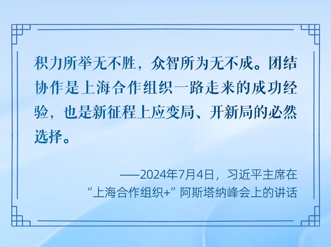 2024年至2025年,中国将接任上海合作组织轮值主席国。从聚焦地区安全拓展到推动国家政治互信、合作发展,从建设惠及各国的基础工程到促进互利包容的经济全球化,中国将继续为这条光明的“上合之路”贡献力量和智慧。
