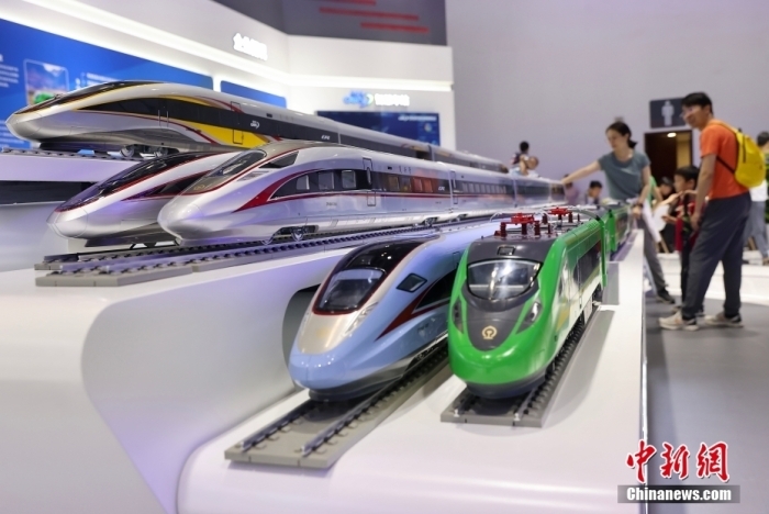 7月13日,第二十六届北京科博会在北京国家会议中心开幕。图为复兴号系列动车组模型。中新社记者 易海菲 摄