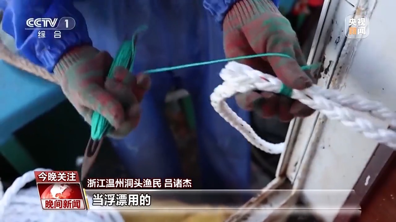 浙江温州洞头渔民 吕诸杰:绳子要绑一下,当浮漂用的,没有浮标的时候,你等一下拉完的时候,找不到位置。