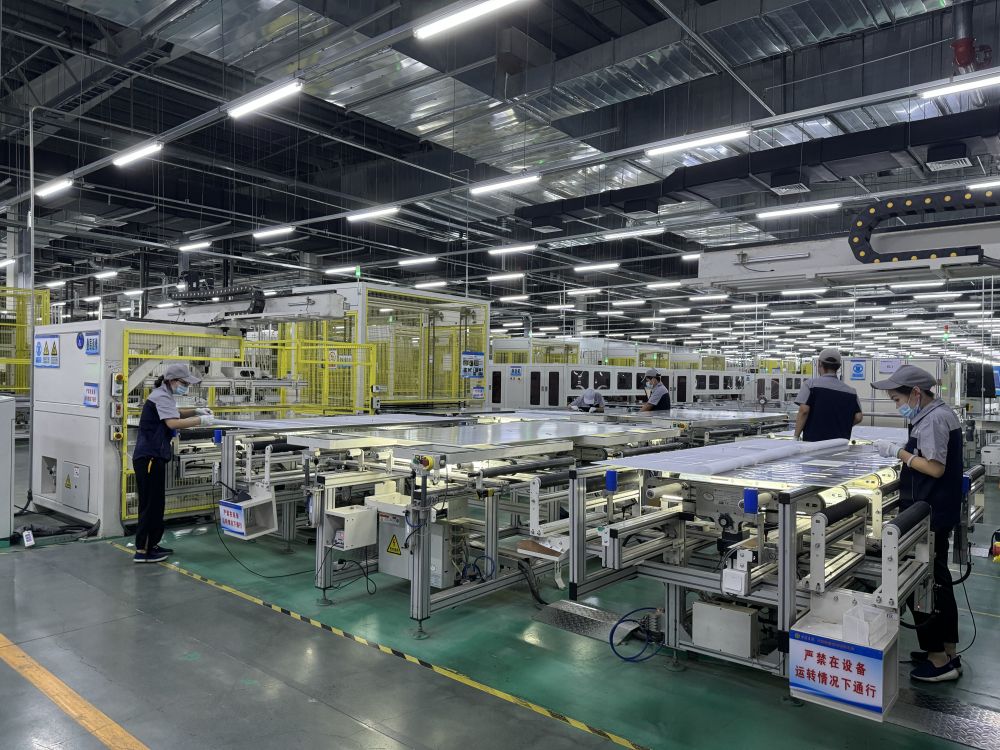 7月31日,工人在山西华储光电有限公司新建的光伏产品制造车间忙碌。新华社记者 王学涛 摄