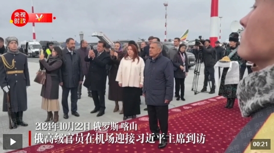 当地时间10月22日中午,国家主席习近平乘专机抵达喀山,应俄罗斯联邦总统普京邀请,出席金砖国家领导人第十六次会晤。