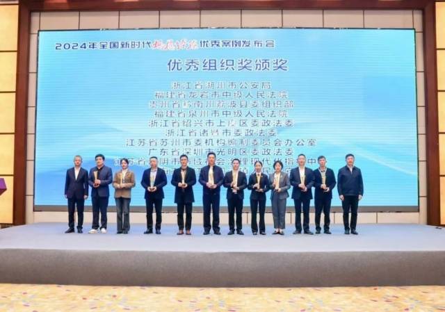 11月25日,2024年全国新时代“枫桥经验”优秀案例发布会在湖州市安吉县隆重举行,由广东省深圳市光明区委政法委统筹申报的“创新打造情理法 ‘三人小组’工作模式提升矛盾纠纷预防化解质效”“从‘心’出发预防化解矛盾纠纷工作法”,被评为2024年全国优秀案例,并获优秀组织奖。