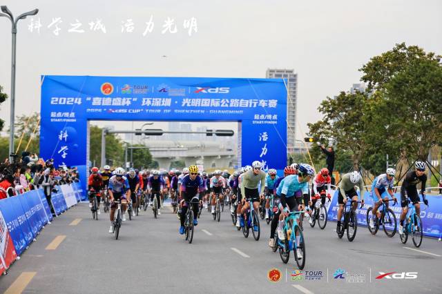 12月15日,2024“喜德盛杯”环深圳·光明国际公路自行车赛在光明科学城激情开赛。来自白俄罗斯、马来西亚、蒙古、泰国等多个国家和地区,近500名骑手汇聚光明,在职业组、精英组、大众组三大组分别开展竞逐。