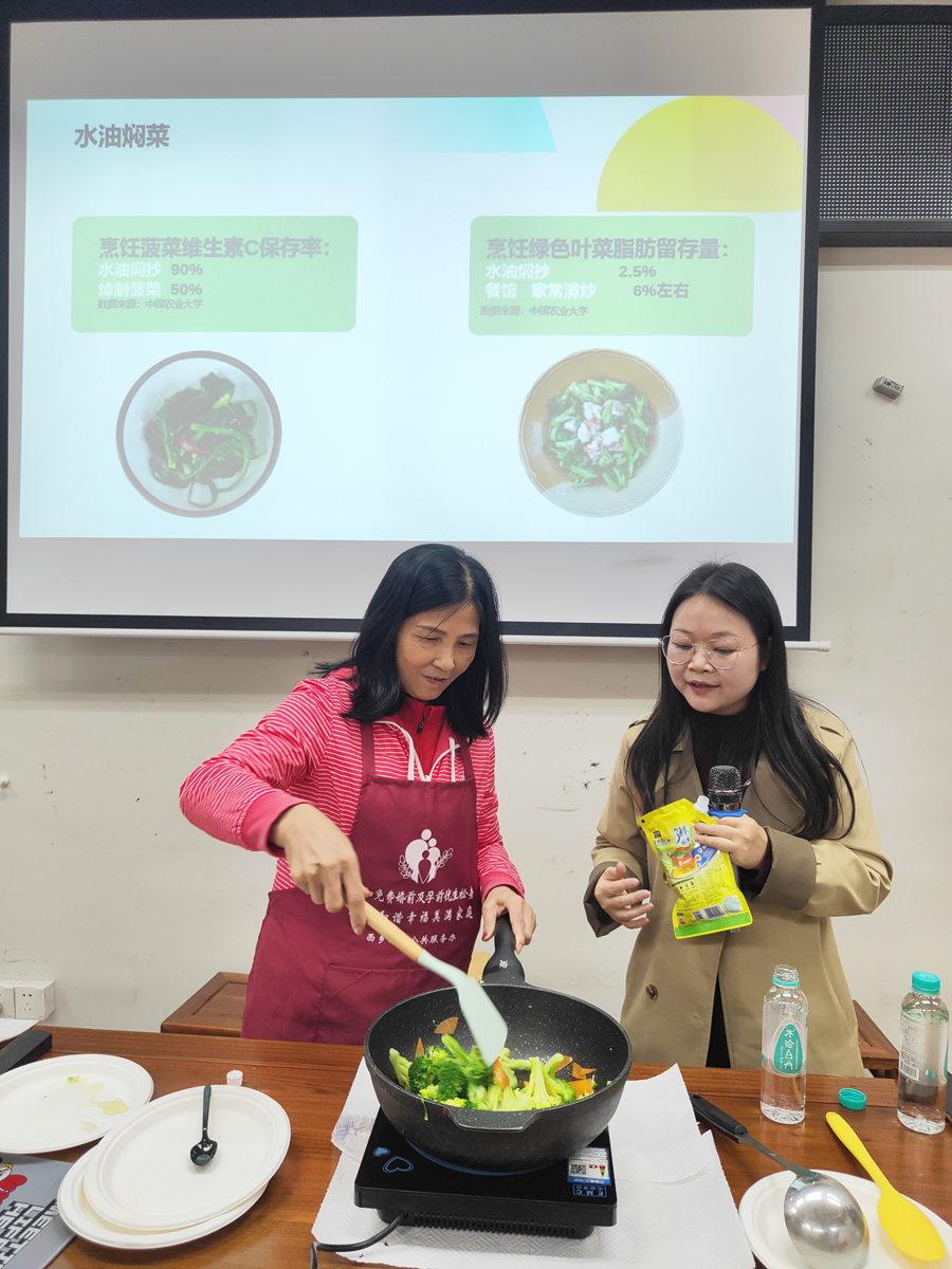 最让老人们感兴趣的是现场营养搭配的健康食疗做法展示环节。小玲老师亲自下厨,以新鲜的食材为原料,为大家演示了几道简单易学且营养丰富的食疗菜品制作过程。她一边操作,一边讲解食材的选择、处理方法以及烹饪技巧,让老人们直观地学习到如何将营养知识转化为美味佳肴。老人们纷纷围拢在操作台前,认真观看,不时提问,现场气氛十分活跃。