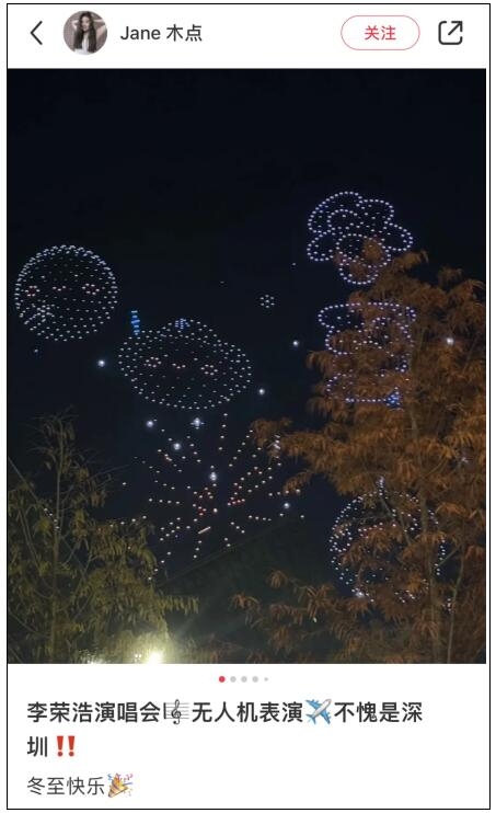 现场画面简直美炸! 要知道在这不下雪的龙岗 那片片飘落的“雪花” 微笑着向所有人招手的“大雪人” 无疑是对市民和远道而来的粉丝 最浪漫的表白 广大市民和粉丝的心瞬间被俘获 社交平台上全是 “龙岗真的很会”“好美”的表白 你以为这就完了吗? 12月21日恰逢冬至 2000架无人机排列出的“冬至祝福”图案 给市民朋友、演唱会听众 送出了暖暖祝福