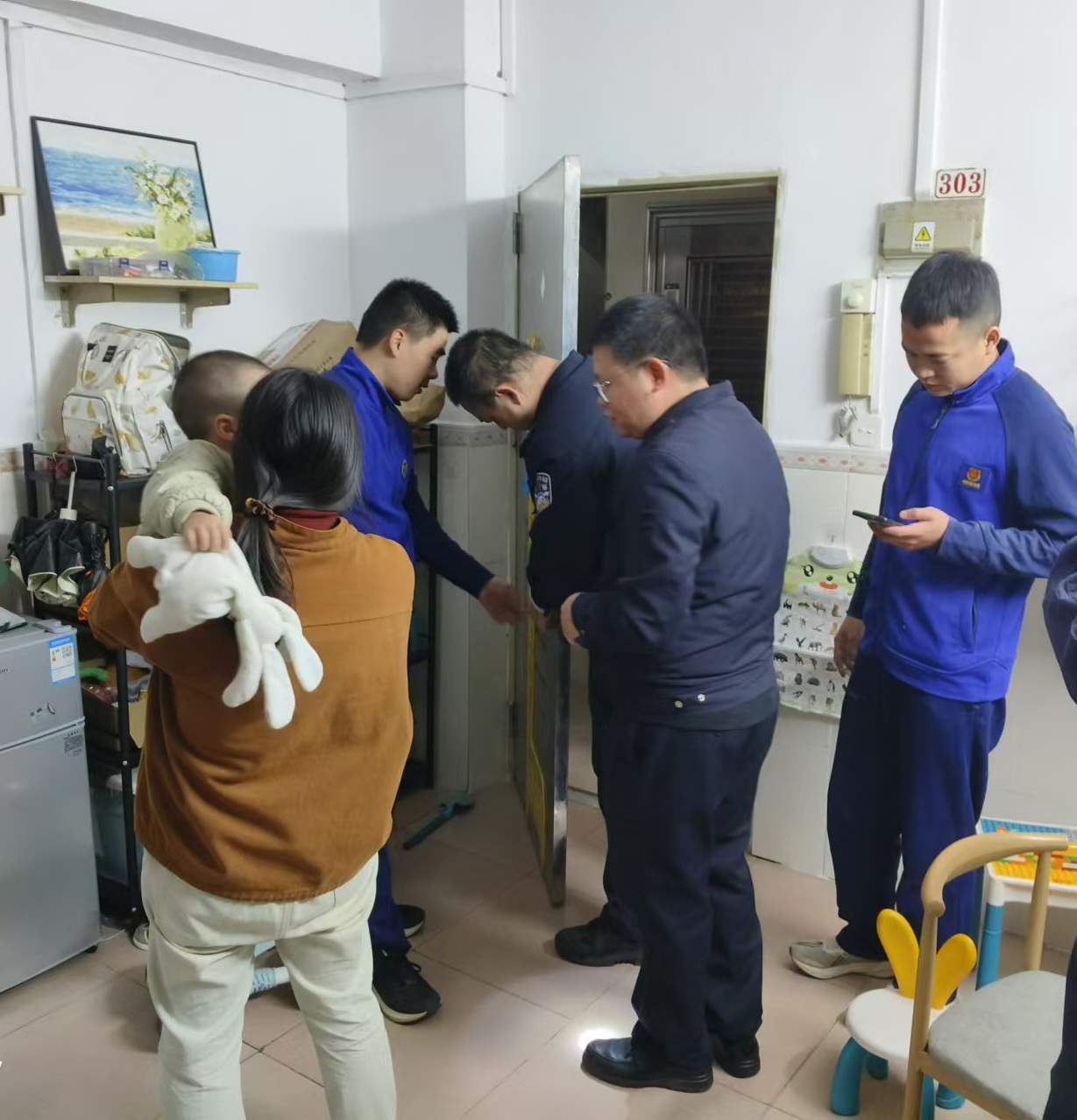 接到求助后,中队长陈锡武、网格员叶盛华第一时间联系物业赶到现场处置。由于工具有限,网格员和物业在尝试多种方法后仍无法打开房门。随后,网格员立即拨打119求助并说明情况。