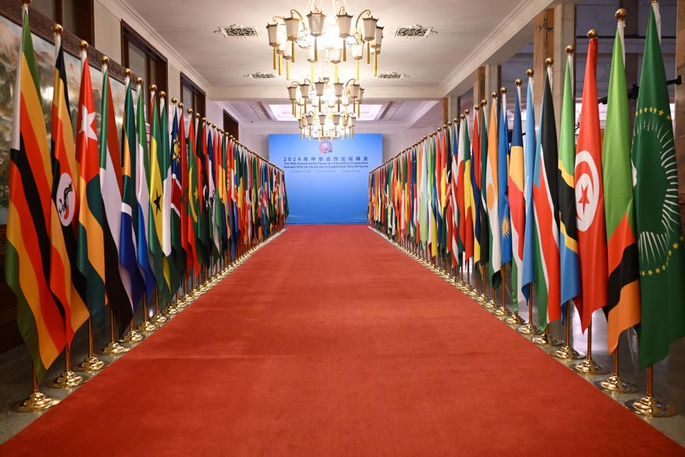 2024年9月5日上午,中非合作论坛北京峰会在北京人民大会堂开幕。这是峰会开幕前拍摄的北京人民大会堂内景。新华社记者金良快摄
