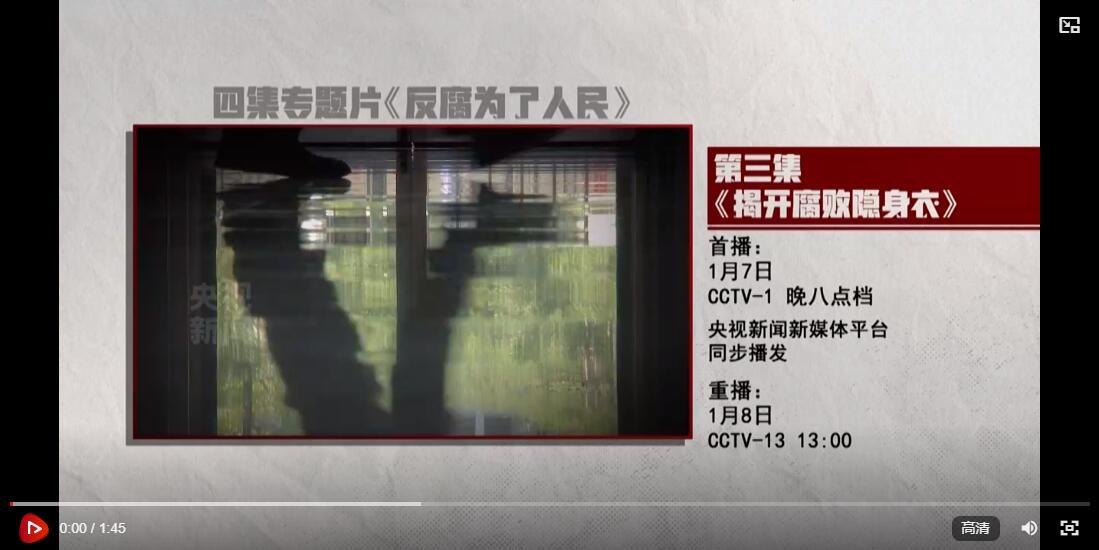 【解说词】《反腐 为了人民》第三集《揭开腐败隐身衣》,敬请关注。