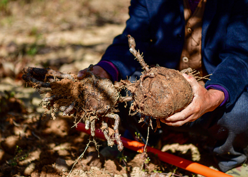 入冬以后,攀枝花市米易县普威镇西番村家家户户先是在树上摘核桃,然后在树下挖续断、刨圆根萝卜……“以前只种核桃树,也只收核桃。现在核桃照样一亩产3000多斤,树下的萝卜一亩又能收3000多斤,试种了续断,干货亩产1000斤,经济效益特别好。”西番村村民都志发对记者说。