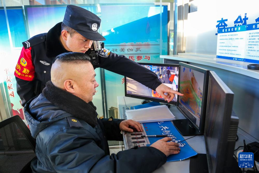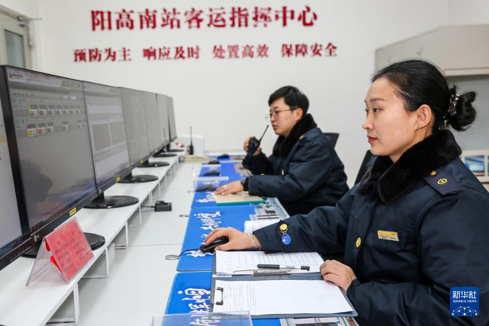 在山西省大同市阳高县阳高南站,综控作业人员通过铁路旅客服务系统核对列车开行车次(1月8日摄)。