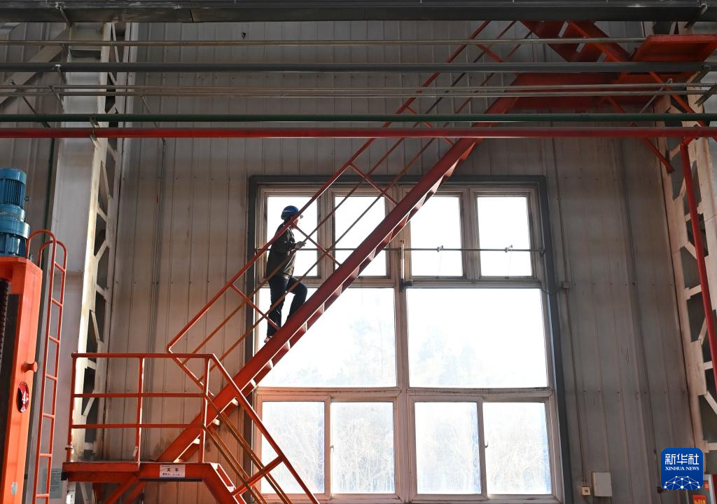 在中国铁路太原局集团有限公司太原机务段太北检修车间,天车司机王淑洁沿着扶梯向上攀爬(1月10日摄)。