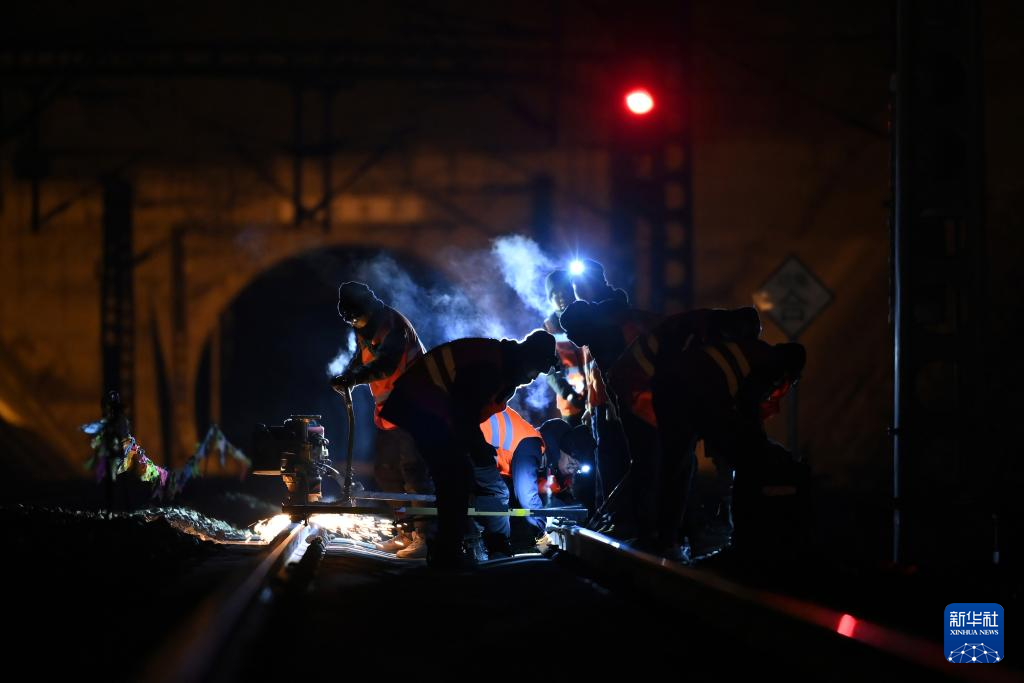 中国铁路太原局集团有限公司太原南工务段吕梁线路车间铁路维修工在进行维修作业(1月9日摄)。