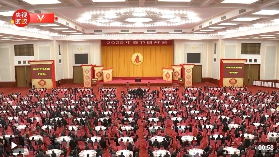 中共中央、国务院27日上午在人民大会堂举行2025年春节团拜会。中共中央总书记、国家主席、中央军委主席习近平发表讲话,代表党中央和国务院,向全国各族人民,向香港特别行政区同胞、澳门特别行政区同胞、台湾同胞和海外侨胞拜年。