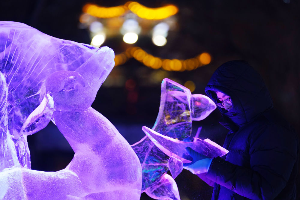 晶莹剔透的冰块在能工巧匠的精心雕琢下