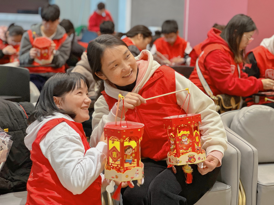 活动现场,四十余名志愿者家庭齐聚一堂,共同参与这一富有传统韵味的手工制作活动。志愿者领队曾令文首先为参与者们详细介绍了元宵节的由来、花灯的历史渊源及其承载的美好寓意。她深入浅出的讲解,让在场的每一个人都对花灯文化有了更加深刻的理解。在热情洋溢的氛围中,参与者们纷纷动起手来,开始了花灯的制作。从精心选择材料、细心拼接,到安装灯泡、装饰点缀,每一个步骤都饱含着参与者们的热情与专注。大家相互交流、相互帮助,现场气氛热烈而温馨。经过一个小时的努力,一盏盏色彩斑斓的花灯在青少年的手中诞生。这些花灯不仅展现了传统文化的魅力,也寄托了大家对美好生活的向往和追求。