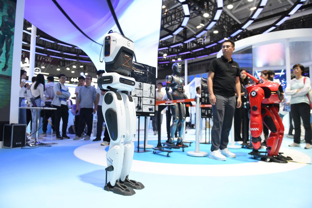 2024年11月14日,在第二十六届中国国际高新技术成果交易会上,深圳市众擎机器人科技有限公司展示机器人的行走能力。新华社记者 毛思倩 摄