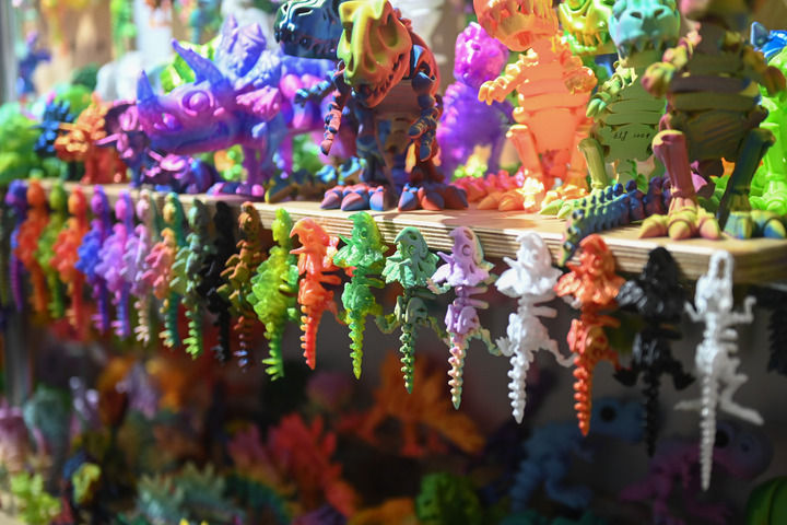 在国际商贸城一区的今奇玩具商铺,龙、蛇、乌龟、鳐鱼等数千种3D打印玩具令人目不暇接。商铺负责人曾豪说,与传统玩具相比,3D打印玩具色彩鲜艳、质感细腻、在关节处的灵活度更高,表现力和可玩性更强,具有更高的附加值和竞争力。