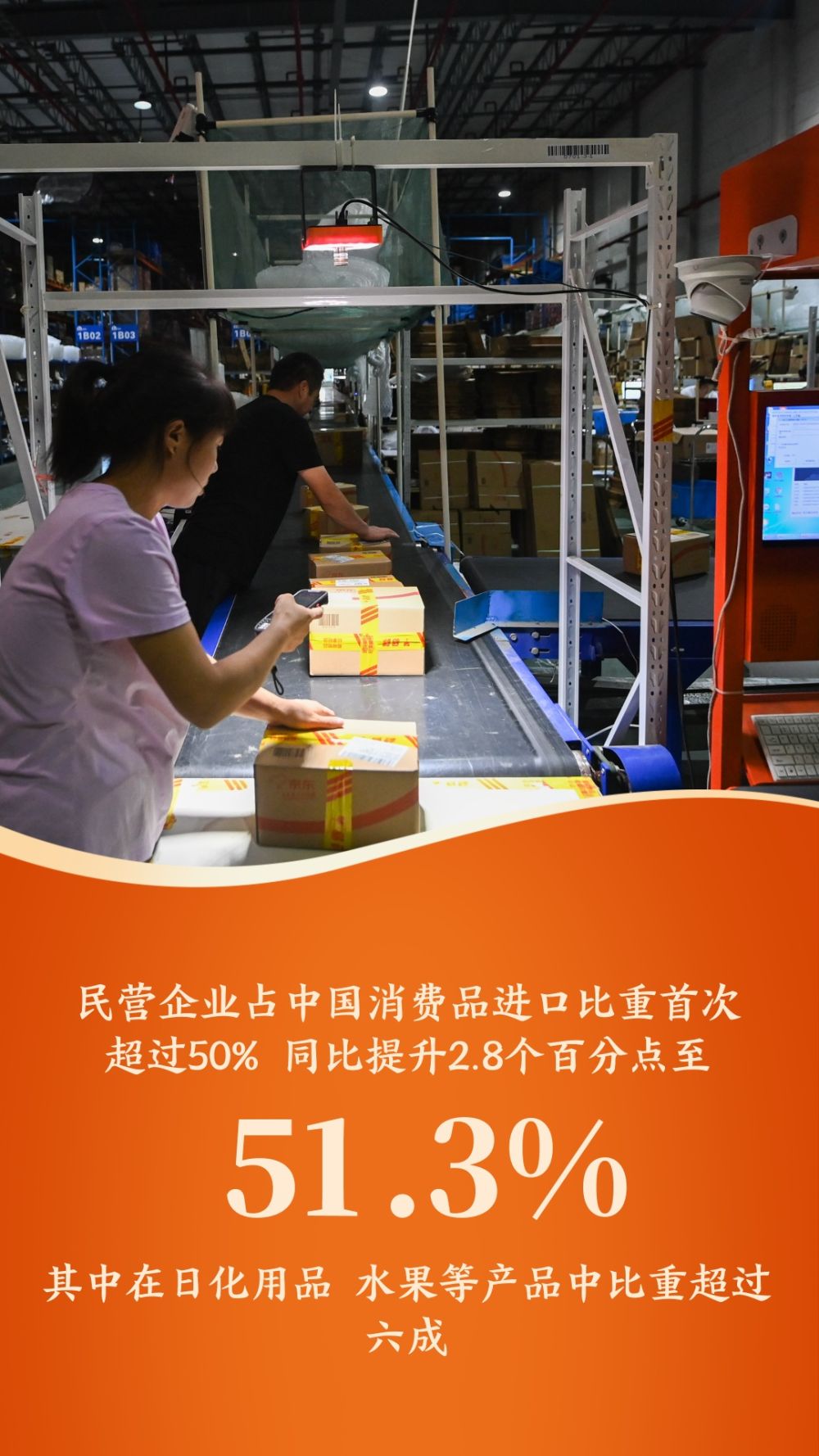 民营企业占我国消费品进口比重首次超过50%,同比提升2.8个百分点至51.3%,其中在日化用品、水果等产品中比重超过六成。