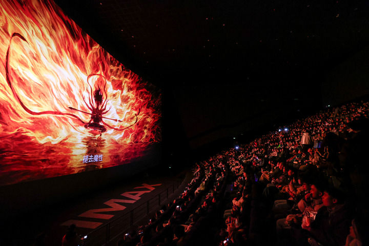 2025年2月25日,观众在贵阳越界影城IMAX影厅内观看电影《哪吒2》。新华社记者 欧东衢 摄