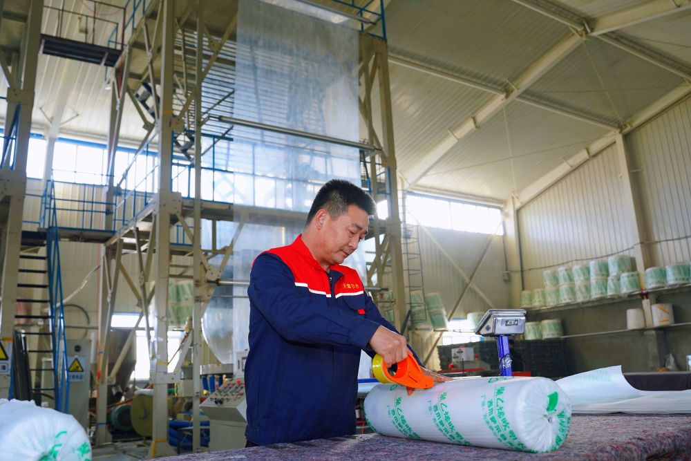 公司负责人杜新学说,公司去年引进了两条新型贴片式滴灌带生产线,生产出的贴片式滴灌带出水均匀、不易堵塞。“我们2024年9月开机生产,预计至今年4月,将生产滴灌带4万卷、地膜800吨。”