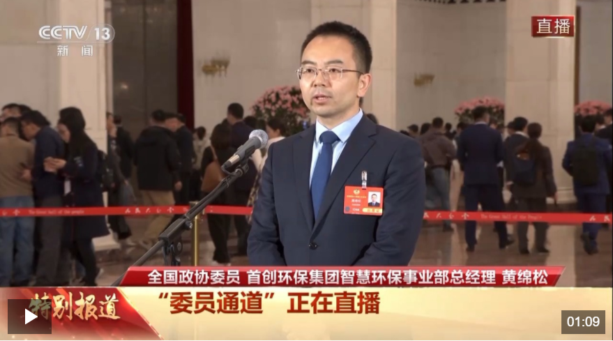 今天(3月4日)下午,全国政协十四届三次会议首场“委员通道”在人民大会堂举行,全国政协委员、首创环保集团智慧环保事业部总经理黄绵松接受了记者采访。