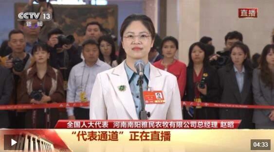 3月11日,十四届全国人大三次会议第三场“代表通道”在人民大会堂举行,全国人大代表、河南南阳雅民农牧有限公司总经理赵昭接受了中央广播电视总台记者采访。