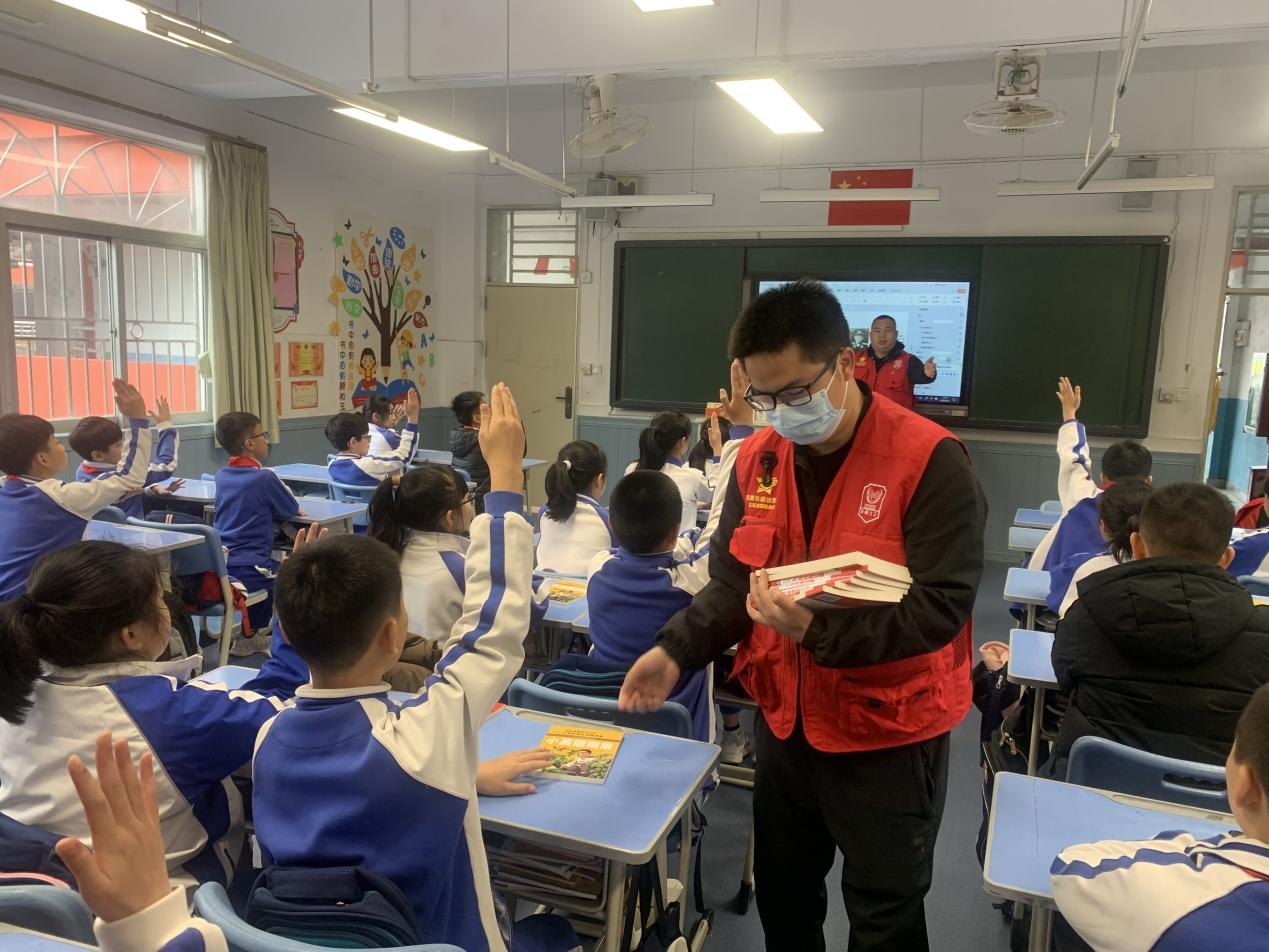 对于积极参与互动的学生,红星志愿者向他们发放了学习文具作为奖励。同时,为了培养学生的阅读兴趣并传承红色文化,活动还为每位学生赠送一本红色故事书籍,进一步丰富学生们的知识储备,让红色文化在校园中生根发芽。