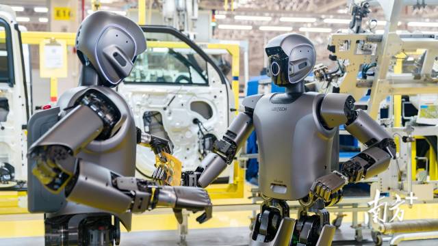 工业人形机器人在工厂执行操作任务。 南方+记者 朱洪波 摄