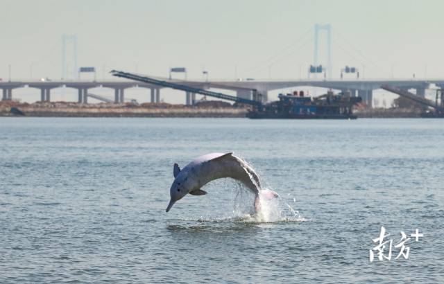 深中通道旁,中华白海豚翩翩起舞。南方+记者 叶志文 摄