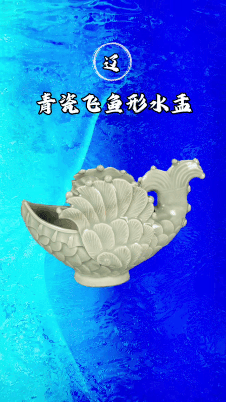 这件辽代的青瓷飞鱼形水盂也格外生动