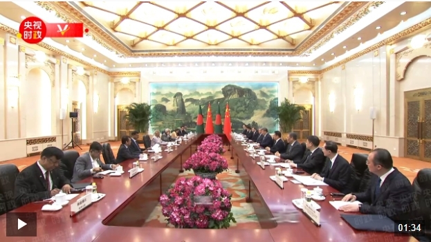 习近平指出,中孟人民友好交往源远流长,古老的丝绸之路把两国紧密联系在一起。建交以来,双方始终相互支持、平等相待、合作共赢。今年是中孟建交50周年和中孟人文交流年。中方愿同孟方一道努力,推动中孟合作不断迈上新台阶。