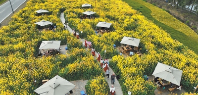 走进位于农博园中心农博岛的稻田餐厅,一缕缕夹杂着花香的火锅味扑面而来。“今年油菜花开得早,我们提前1个多月接受预订,高峰期一天就接待了400多名客人!”餐厅主理人陈娟透露,花期延长后,今年营业额大幅增长,“现在不仅周末爆满,连工作日的预订率都提升不少。”