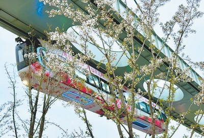 为了更好服务游客,武汉今年将空轨纳入了“武汉樱花季”的推荐路线。“这条线路全长约10.5公里,设站6座,推出了单次票、日票、月票等不同形式的票价,价格在30元至120元之间。”武汉空轨工作人员周欣林介绍,今年3月樱花开放期间,空轨日均客流量约1.5万人次。此外,还首次推出环游式定制巴士,游客可乘车在2小时内参观武汉的文旅地标。
