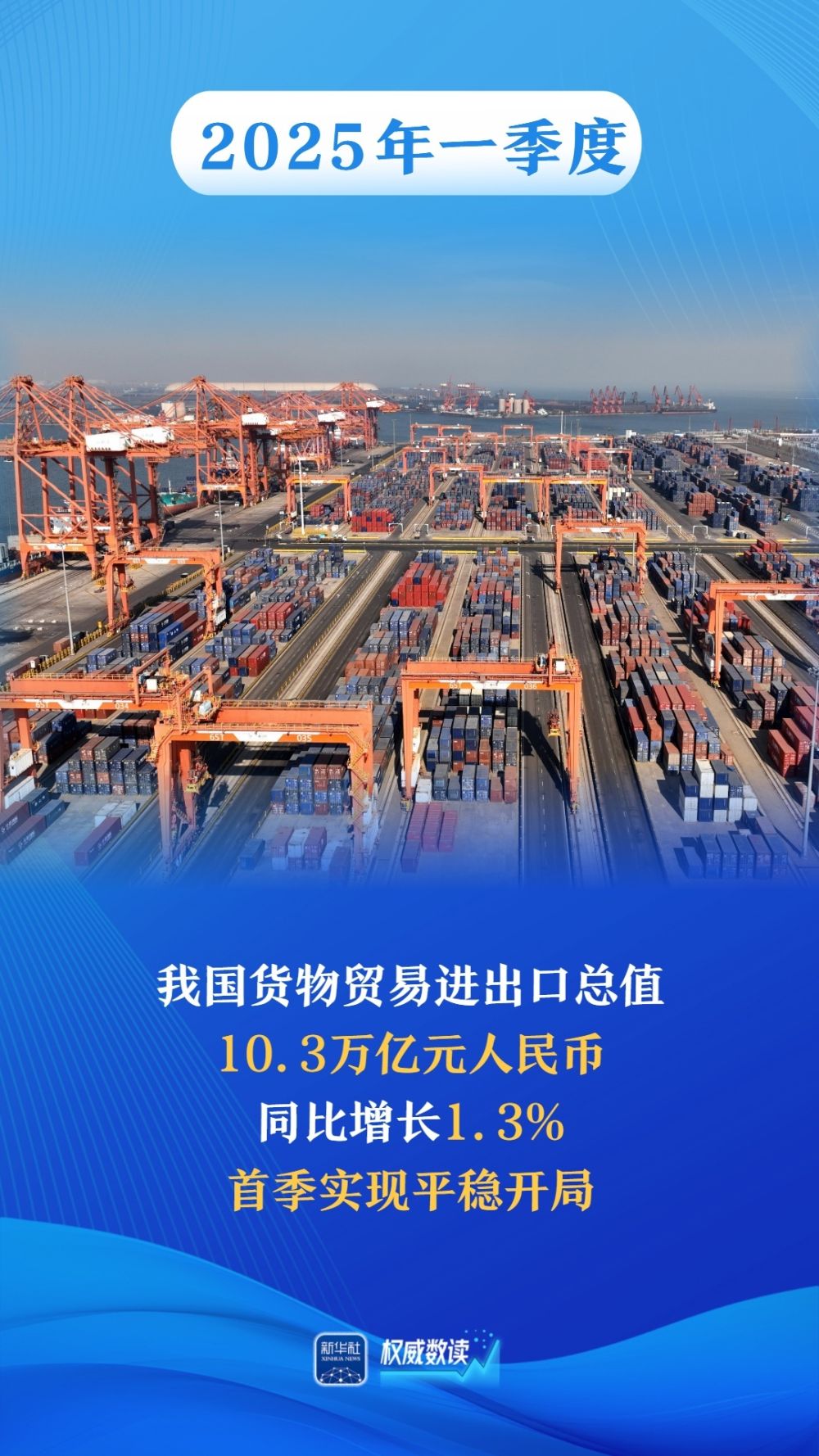国务院新闻办14日举行新闻发布会,介绍2025年一季度进出口情况。今年一季度,我国货物贸易进出口10.3万亿元,同比增长1.3%。在外部困难挑战增多的情况下,各地各部门和广大外贸经营主体积极应对,推动一季度我国外贸进出口实现平稳开局。