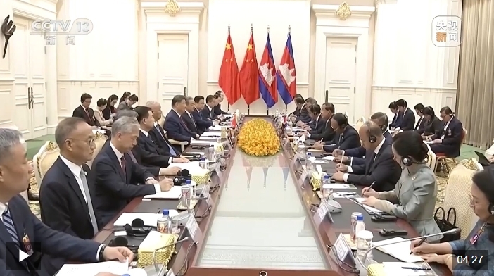 习近平指出,中柬两国是友好邻邦,更是铁杆朋友。构建中柬命运共同体是历史的选择、人民的选择。当前,中柬两国都处在国家发展的关键阶段,双方要心系人民福祉,胸怀人类进步,在推进各自现代化进程中,为构建人类命运共同体树立典范,携手做世界百年变局中的和平力量、稳定力量、进步力量。
