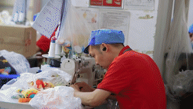 每天清晨,广东东莞茶山镇的毛绒玩具厂车间里,白炽灯都会次第亮起。车板工王君元熟练地整理着面前的布料,指尖捏着镊子在板料上来回穿梭。