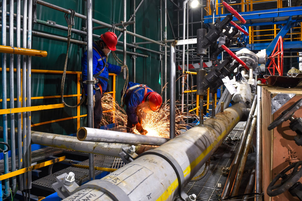 2月12日,工人在位于吉林省吉林市的中国石油吉林石化公司炼油化工转型升级项目120万吨/年乙烯装置建设现场施工作业。新华社记者 许畅 摄