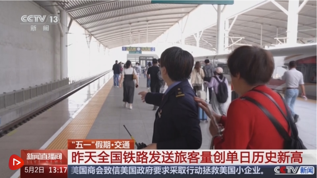 央视网消息:5月2日是“五一”假期的第二天,5月1日假期首日,交通运输保持高位运行态势,全国铁路单日旅客发送量创历史新高。5月2日,短途出行客流明显增加。