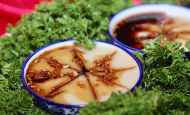 浇着酱汁的客家风味米粄软韧光滑、晶亮剔透。