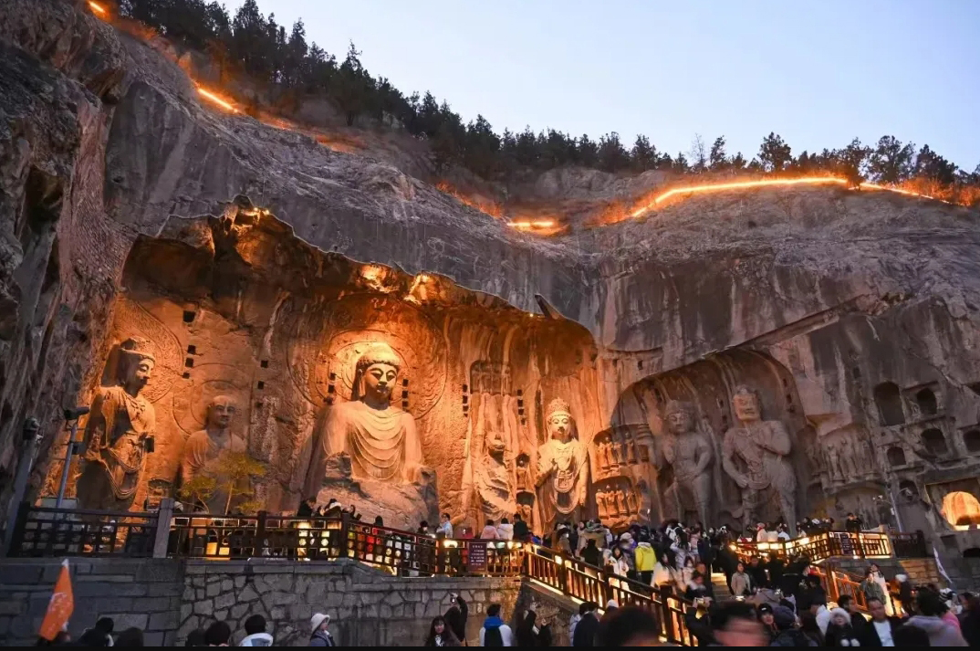 洛阳城南,伊水汤汤。2345个窟龛、近11万尊石刻造像、2800余块碑刻题记,以峭壁层阿为依托,在夹岸青山镌刻下沧桑的历史印记,这就是洛阳龙门石窟。