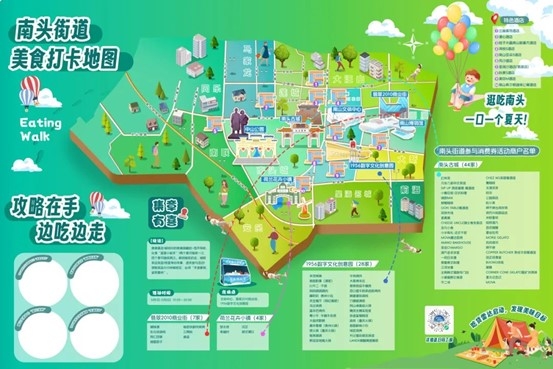 南头街道首度发布消费打卡地图,标注“四地一线”特色商家,还拍摄《舌尖上的南头》等微宣传片,不仅聚焦假日经济,更注重文旅综合发展,持续为新消费引流。