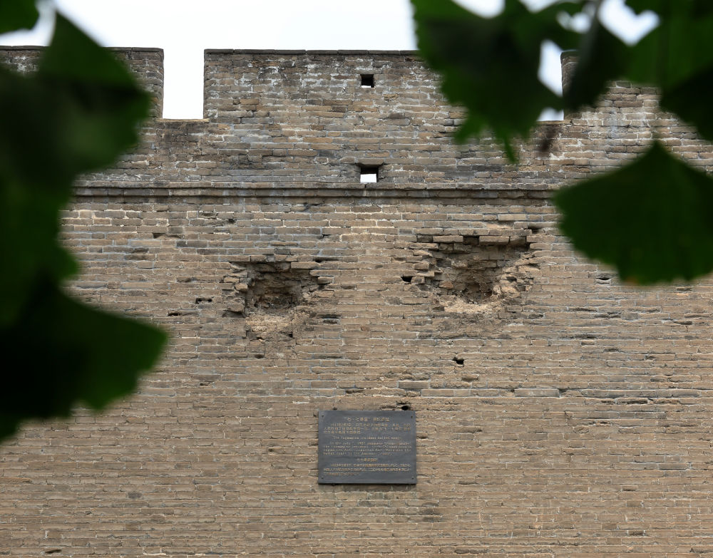 这是2025年7月4日拍摄的宛平城城墙上的弹坑遗迹。新华社记者 张晨霖 摄