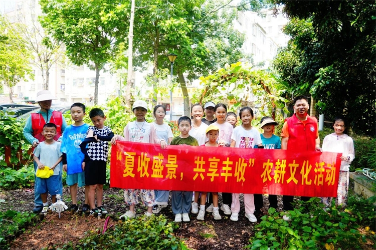 近日,深圳市龙华区观澜街道桂香社区党群服务中心在大沙河新村共建生态园开展“夏收盛景,共享丰收”农耕文化活动,15名小朋友在欢声笑语中体验农耕乐趣,传承农耕文化。