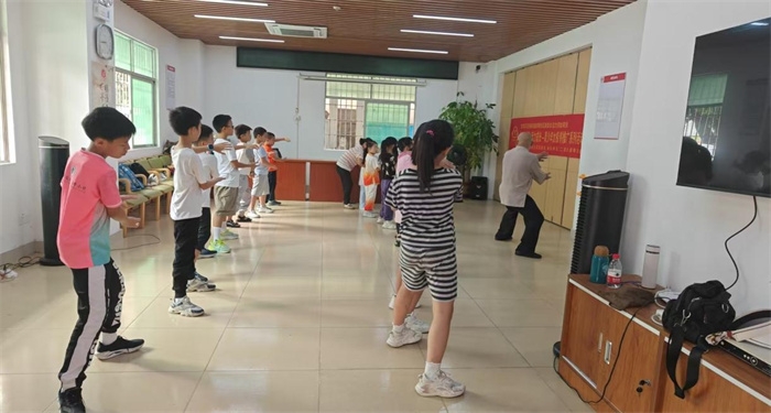 活动伊始,陈氏太极第十三代传承人李师傅给大家科普太极拳的起源与发展、抱拳礼勇武谦逊、文武兼修的文化寓意,随后给大家展示完整一套动作,招式刚柔相济,一招一式间既见筋骨力道,又含气韵流转。同学们目不转睛,瞬间被太极拳的灵动刚劲所吸引,怀着浓厚的兴趣,跟随李师傅开始压腿、转腰、活腕等动态热身,正式学习太极拳起势、拦扎衣、六封四闭招式......李师傅一边演示,一边耐心细致地讲解动作要点,逐个提点、纠正孩子们的动作。“太极拳真是太有意思了,下课回去以后我要教会爸爸妈妈,带他们一起动起来,把太极发扬光大。”活动结束后,一个小朋友高兴地说。