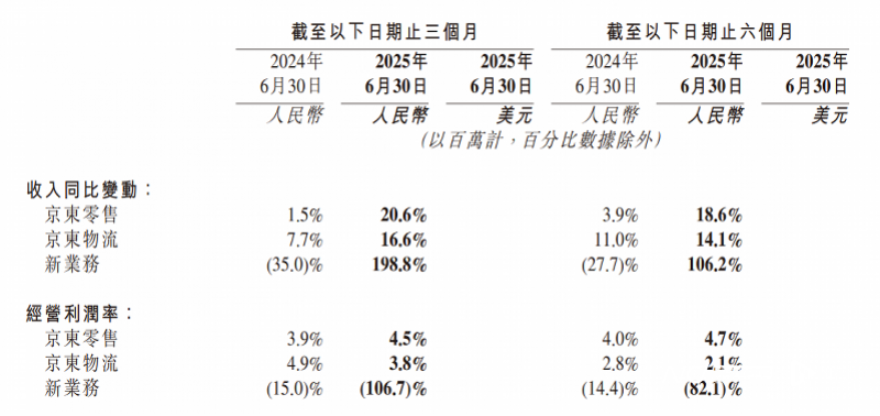 从具体业务来看,2025年第二季度,新业务营收为138.52亿元,同比增长198.8%。新业务主要包括京东外卖、京东物业、京喜及海外业务。