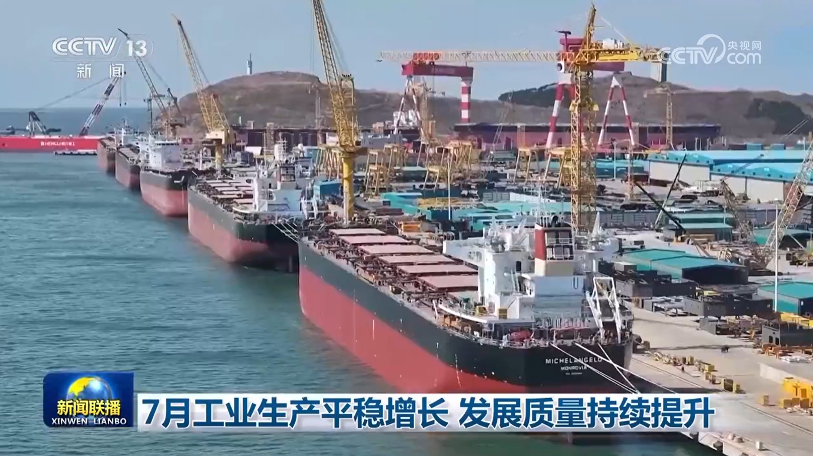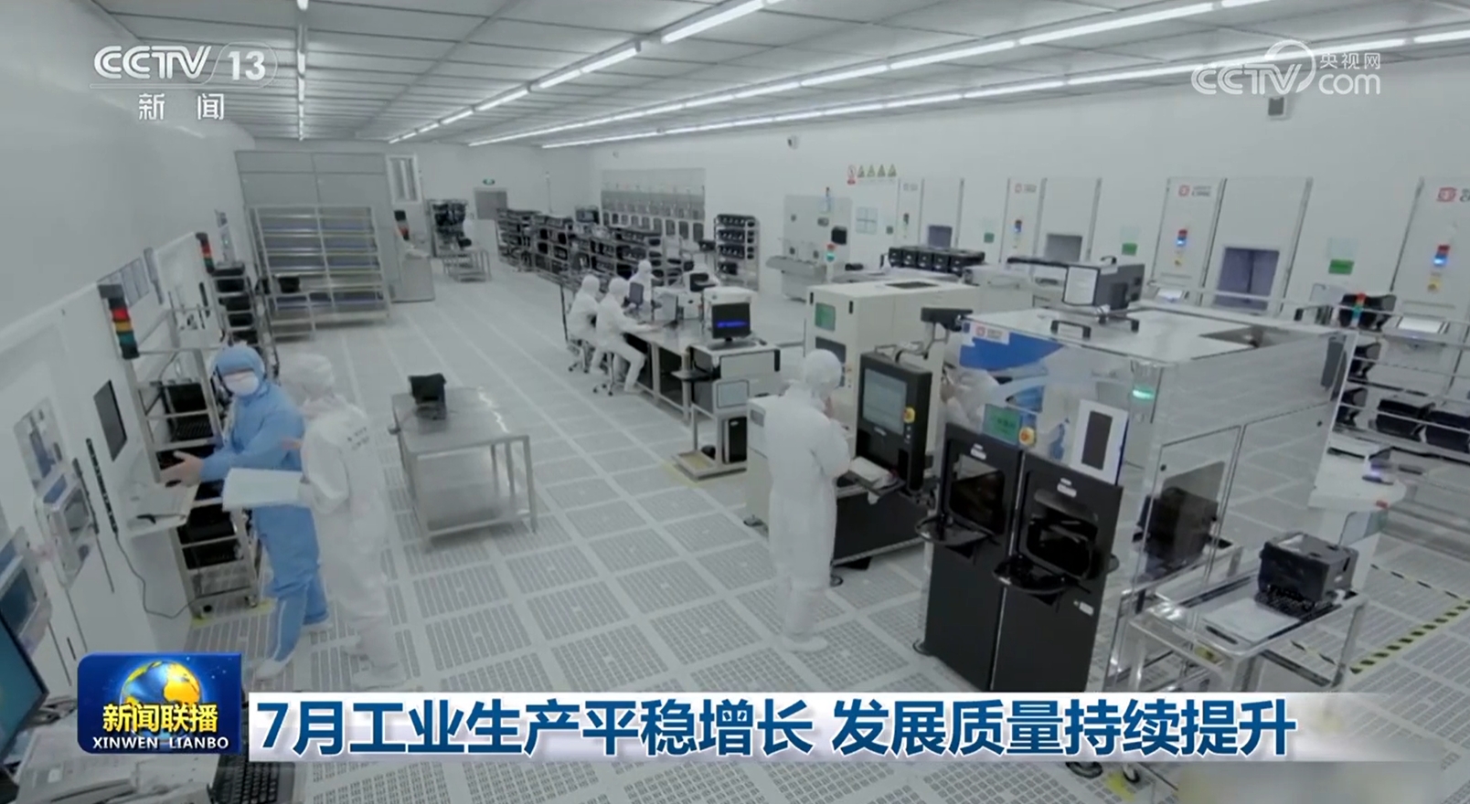 央视网消息(新闻联播):7月份,我国工业生产总体保持平稳,多数行业、产品实现增长,装备制造业支撑有力,工业经济高质量发展稳步推进。