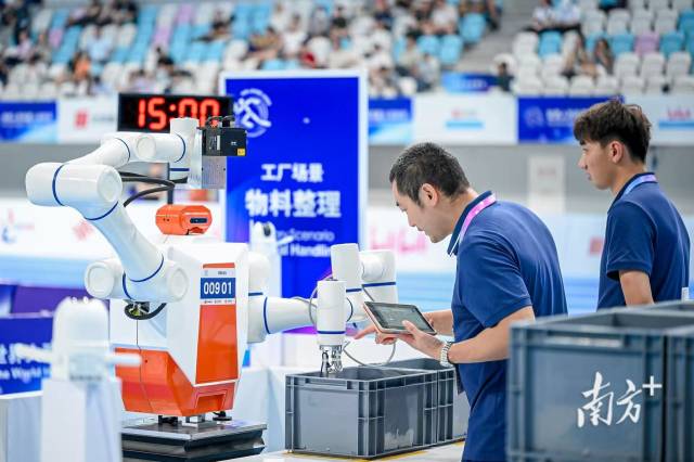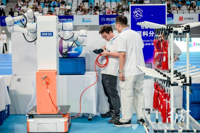 在工业场景赛中,由广东领益智造股份有限公司派出的领智战队,一举包揽“工厂物料搬运”与“混料分拣”两项竞技项目的冠军,并在“物料整理”项目中斩获铜牌。